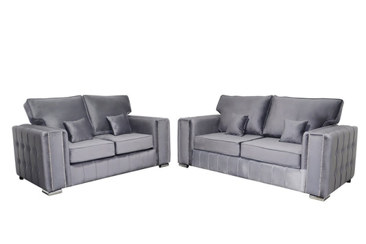 Olympia 3 Seater & 2 Seater - Silver Crushed Velvet