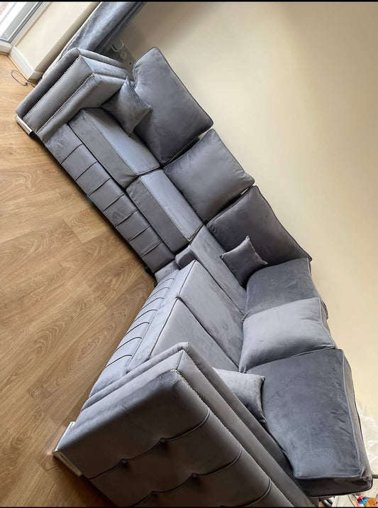 Malibu 4 Seater Corner - Grey Chenille Fullback